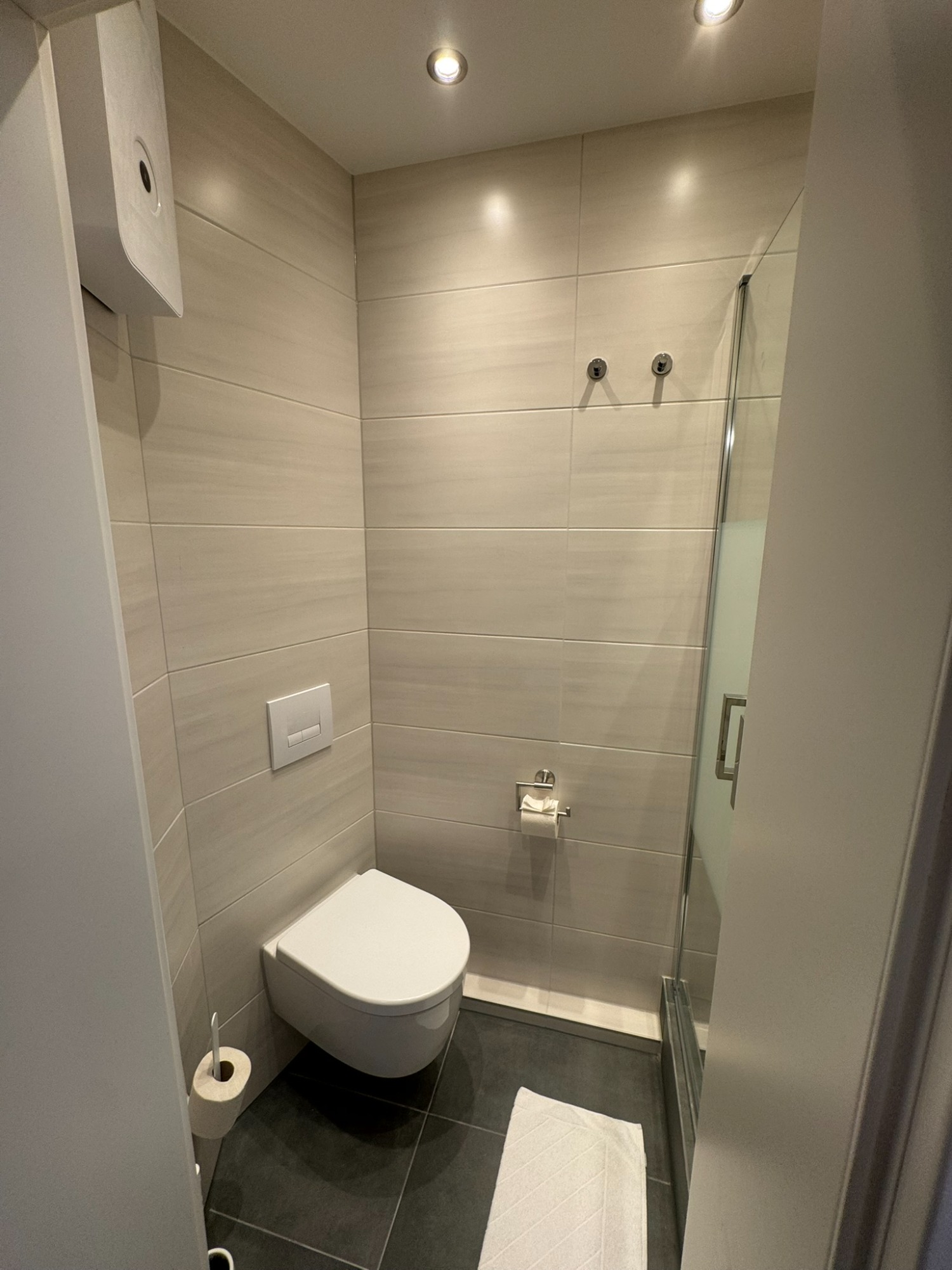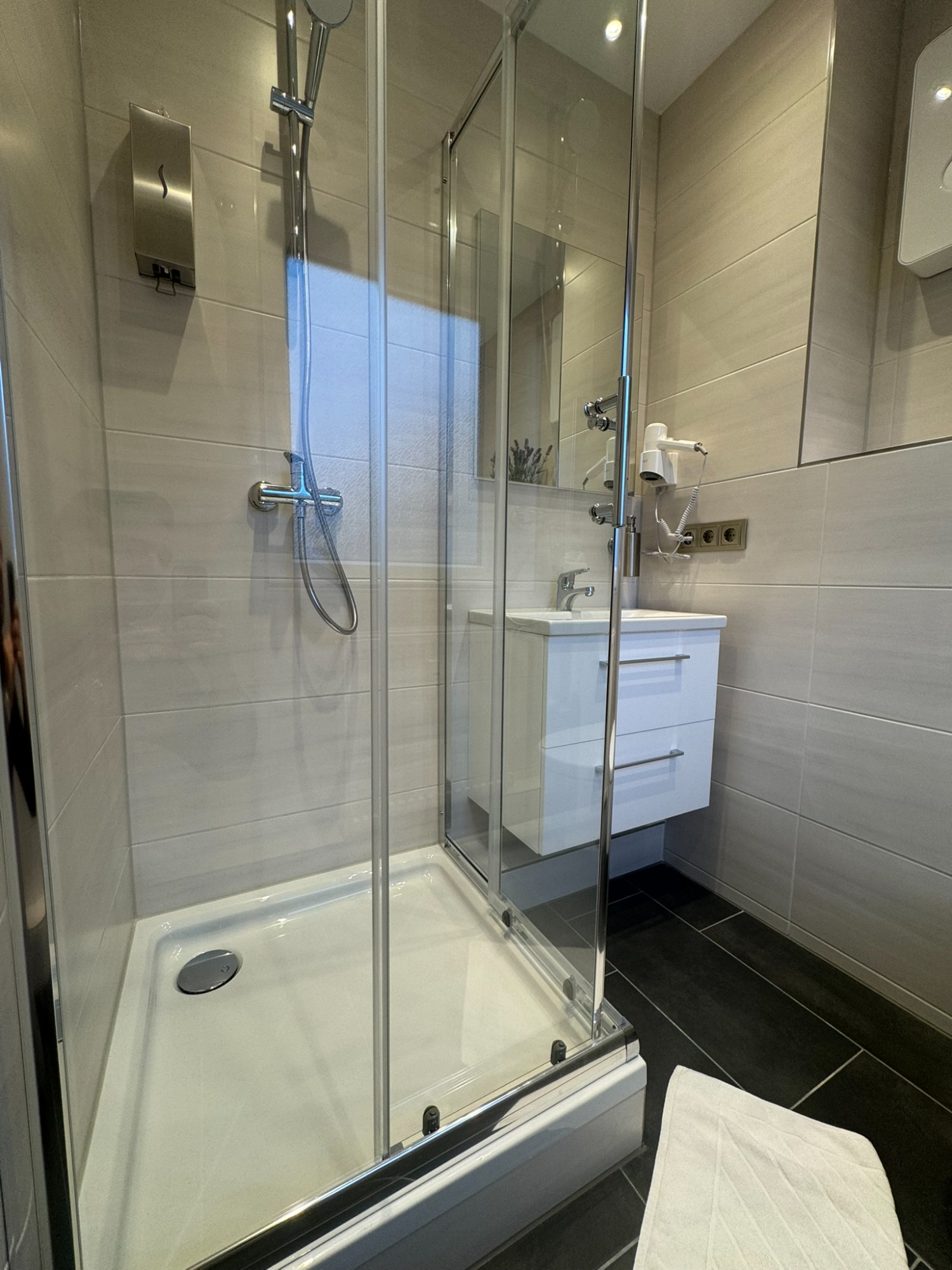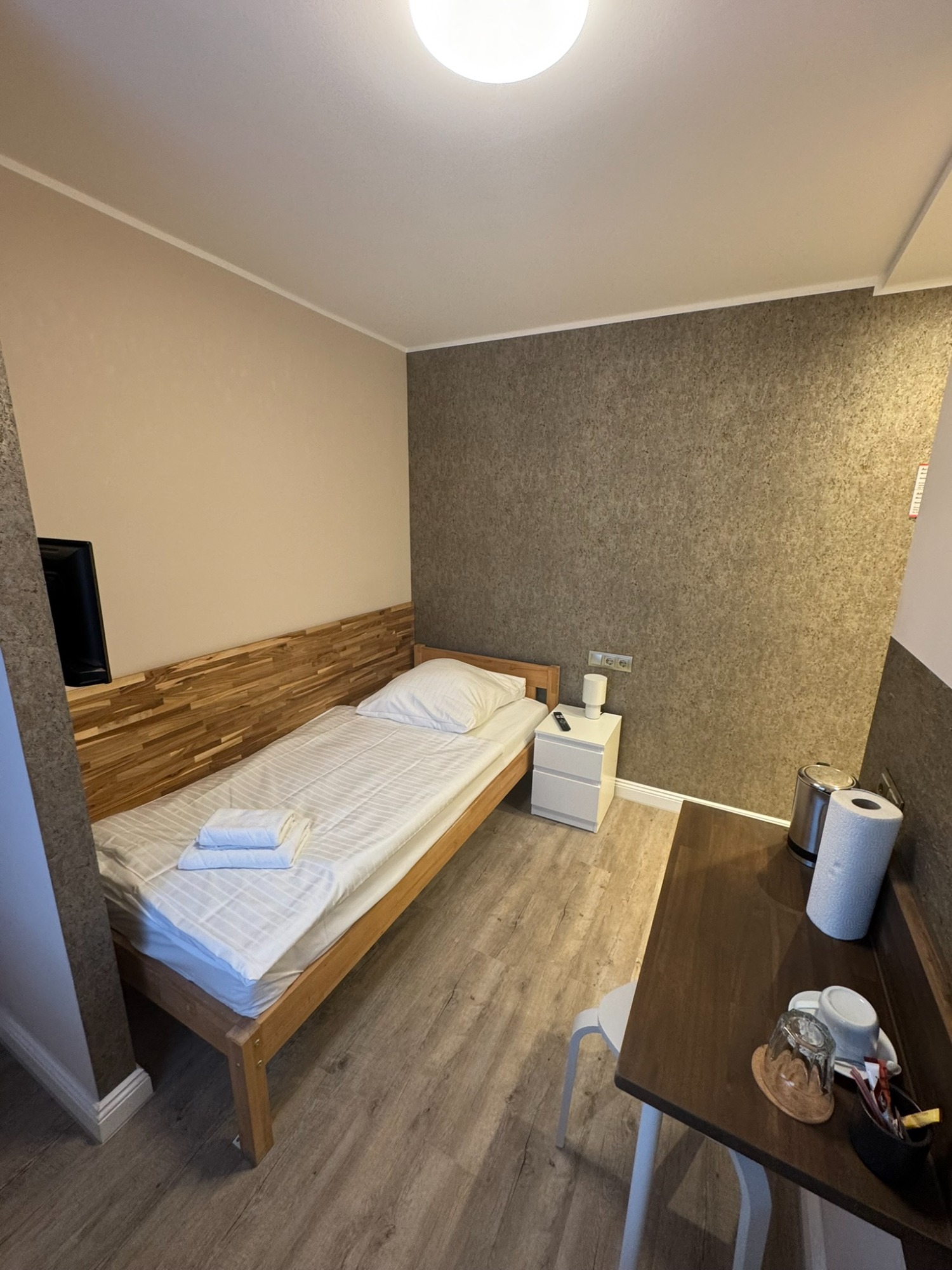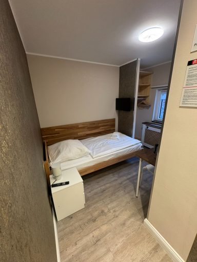 Einzelzimmer mit eigenem Bad und WC, 3. Obergeschoss mit Blick auf den Innenhof.
