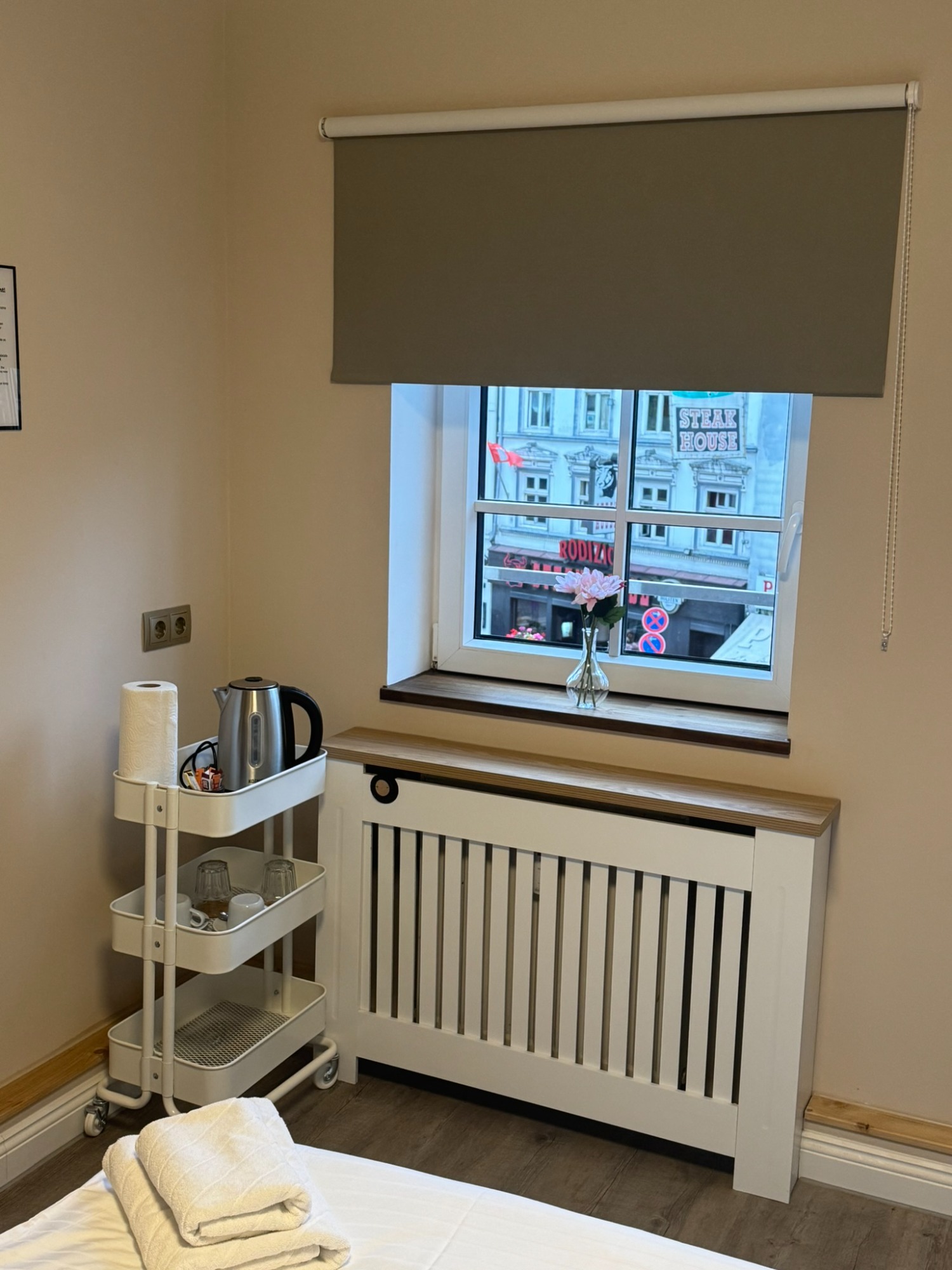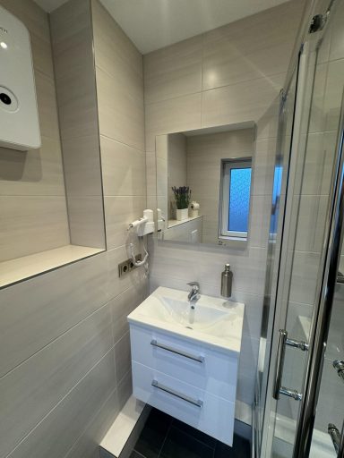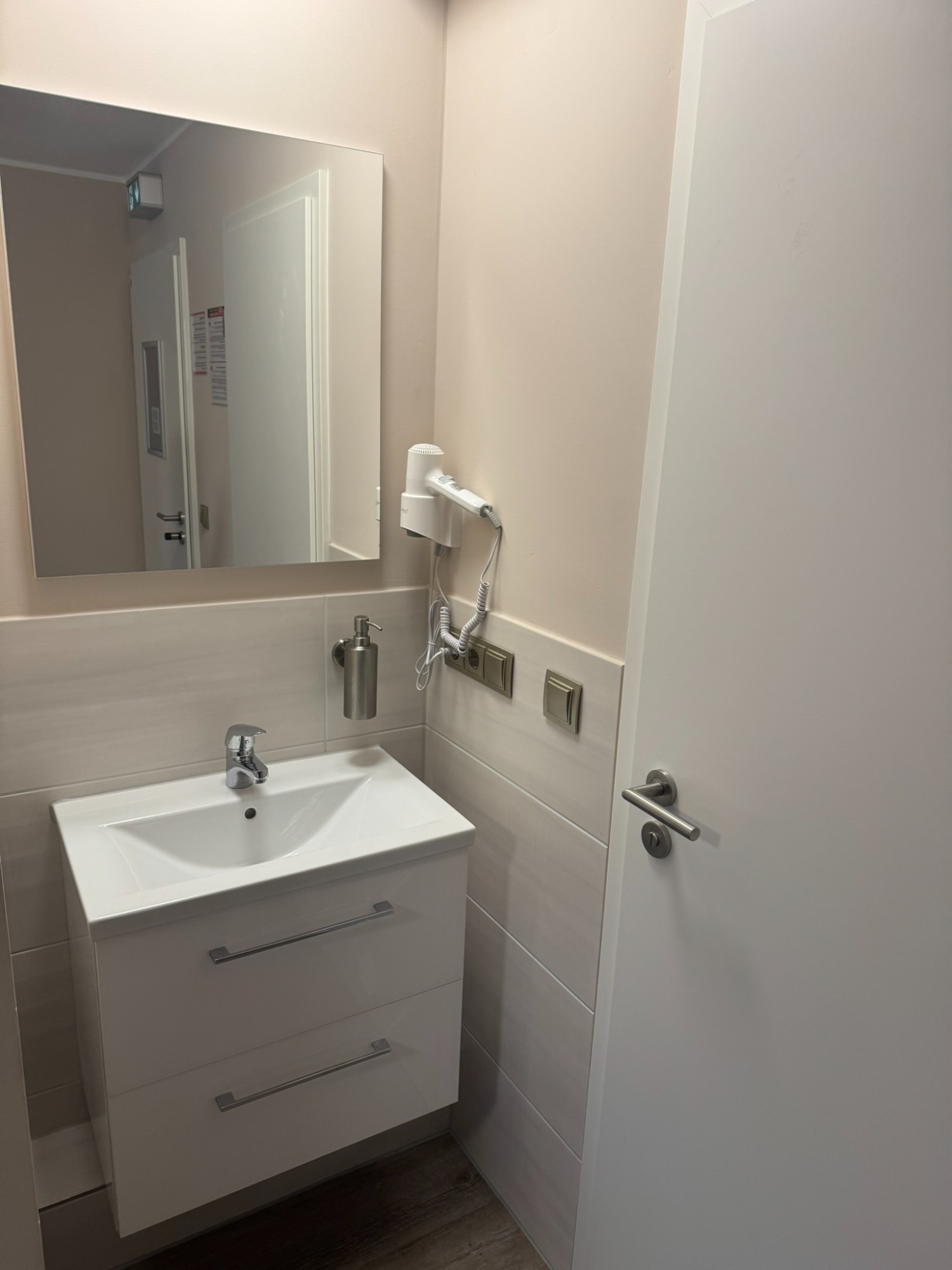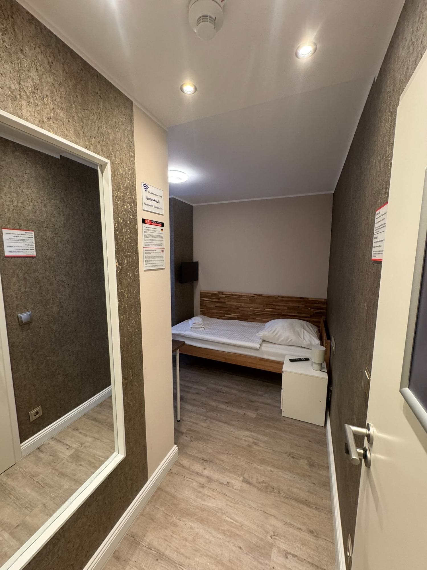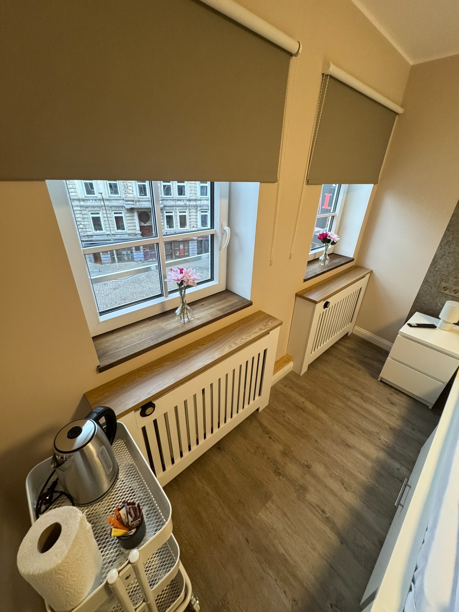 Doppelzimmer mit eigenem Bad und WC, 3. Obergeschoss mit Blick auf den Hans-Albers-Platz.