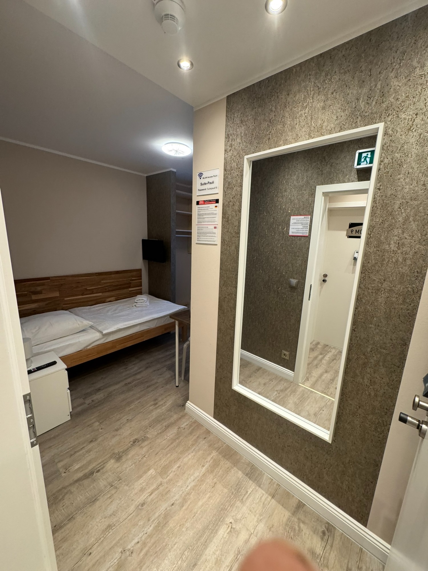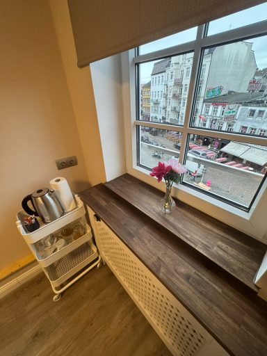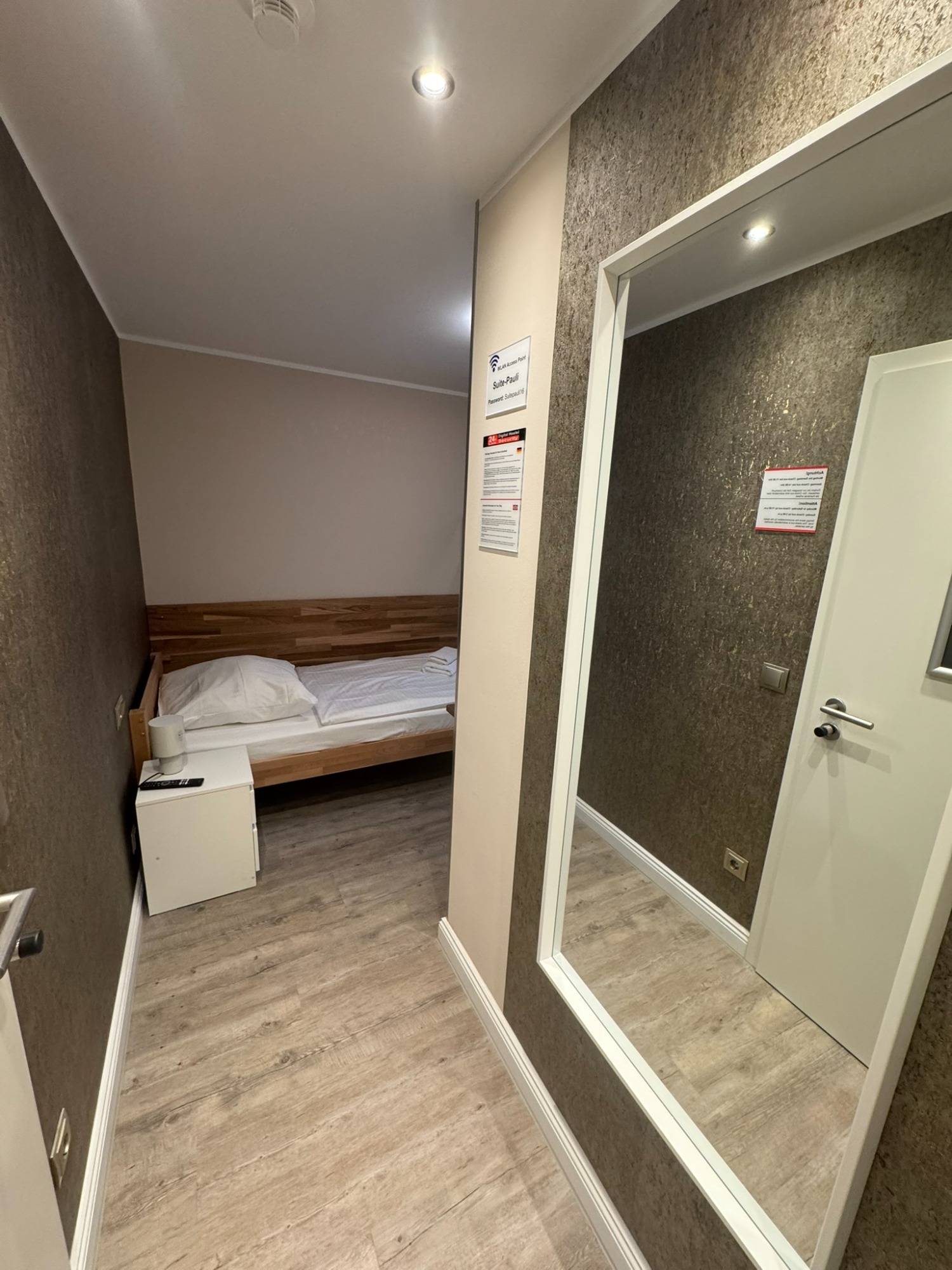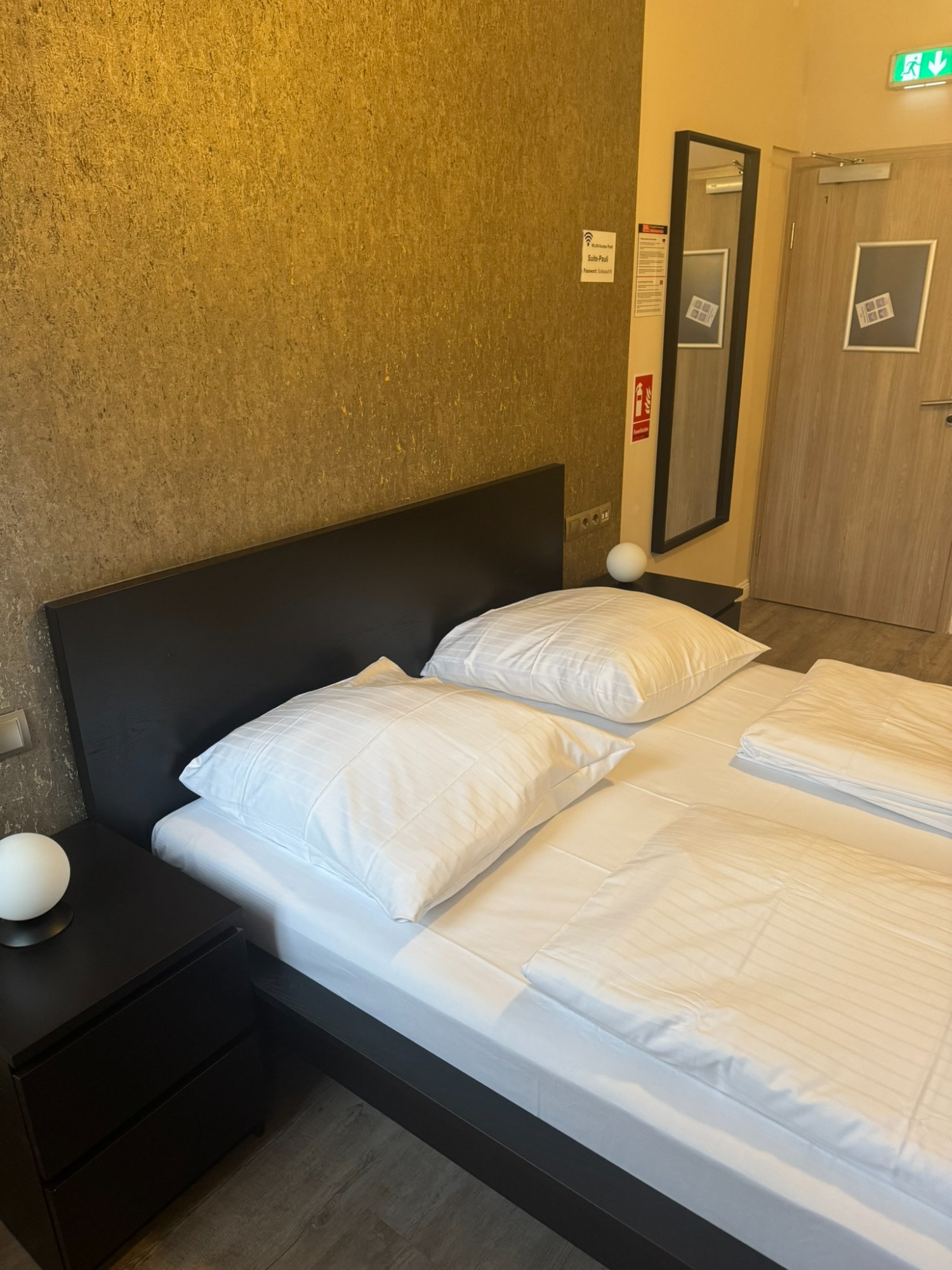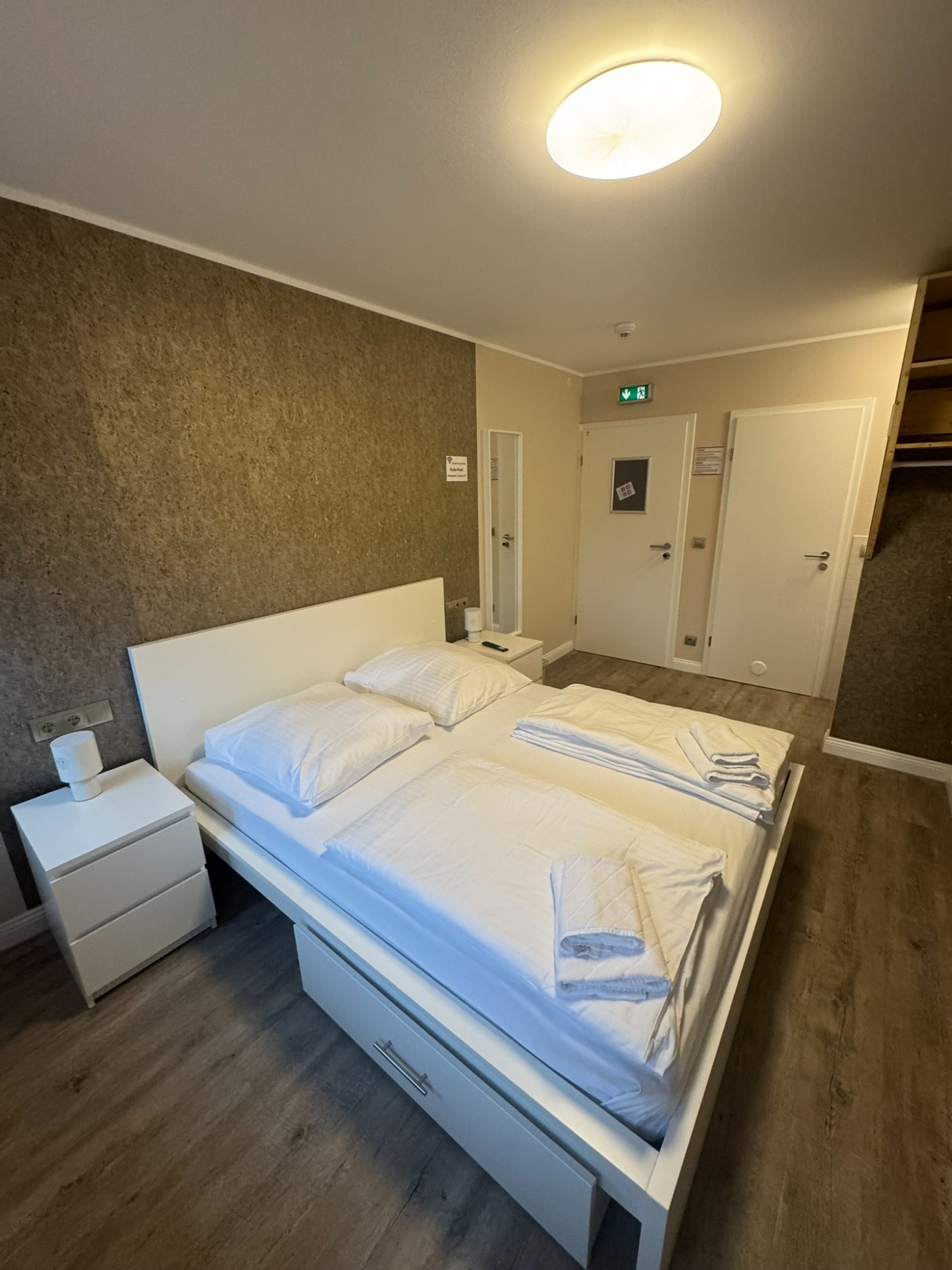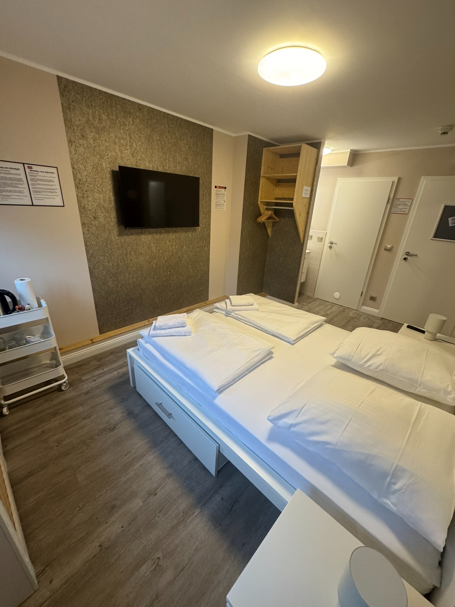 Großes Doppelzimmer mit eigenem Bad und WC, 3. Obergeschoss mit Blick auf den Hans-Albers-Platz.
