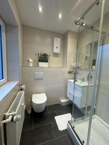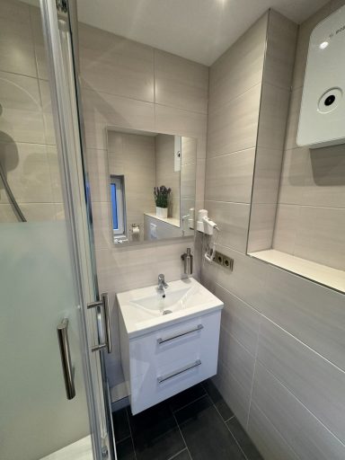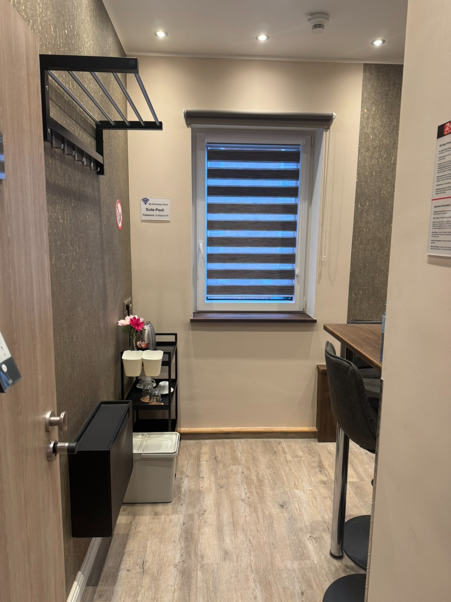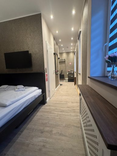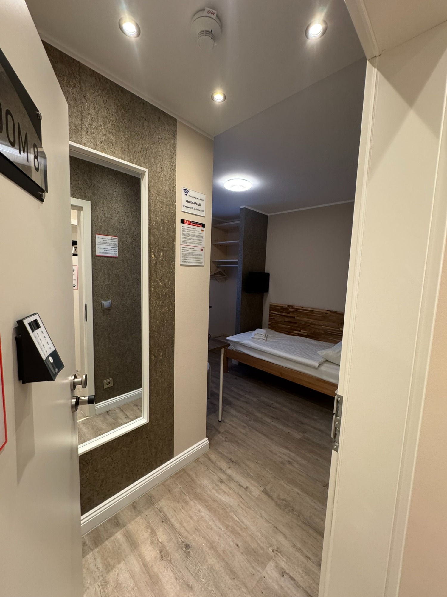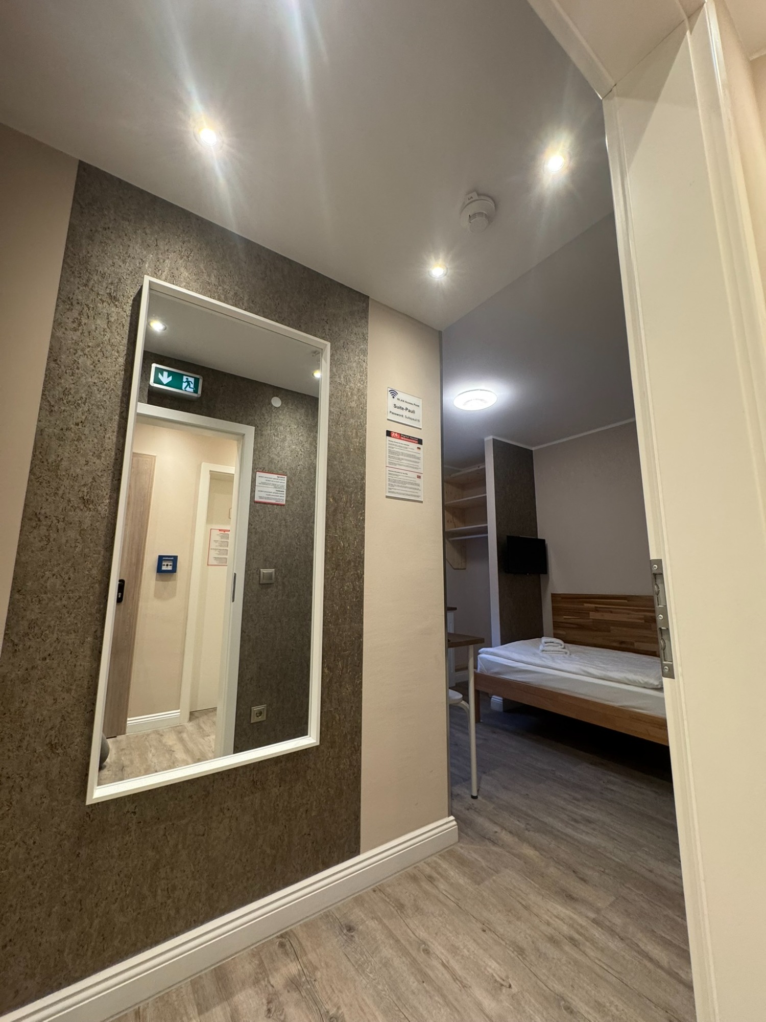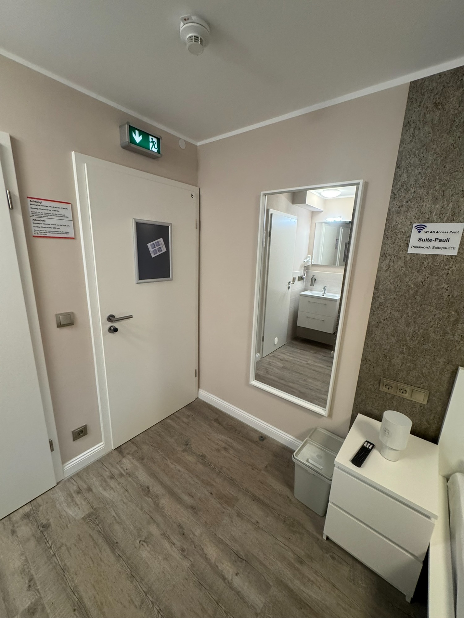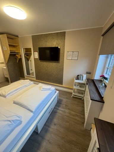Großes Doppelzimmer mit eigenem Bad und WC, 3. Obergeschoss mit Blick auf den Hans-Albers-Platz.