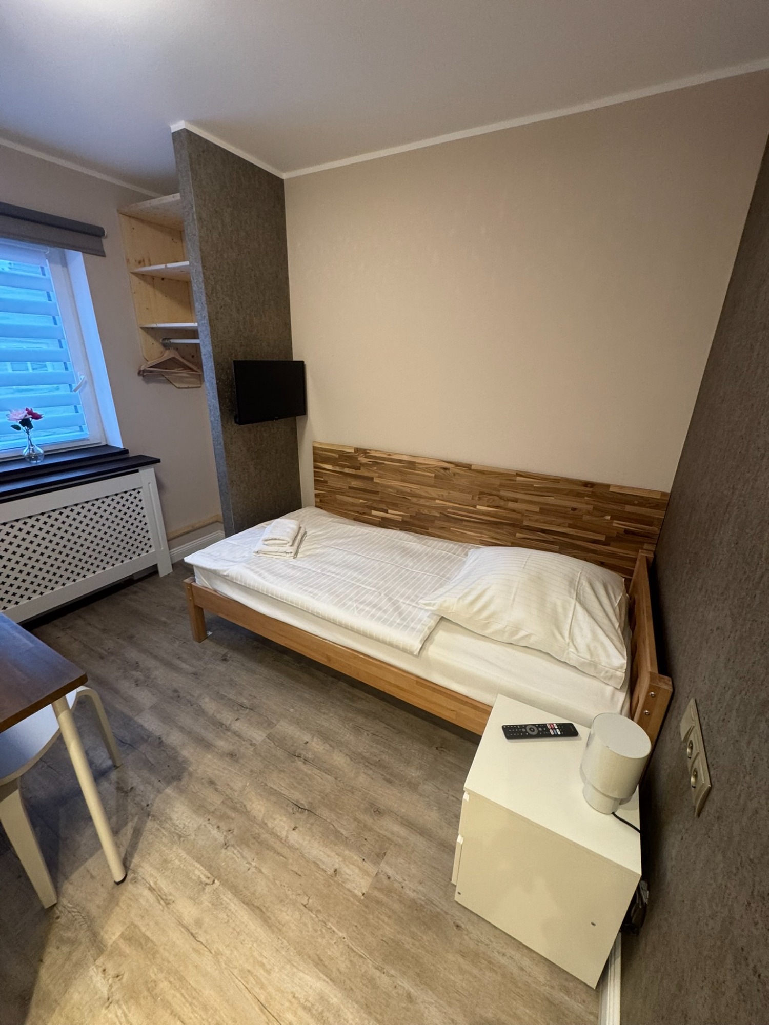 Einzelzimmer mit eigenem Bad und WC, 2. Obergeschoss mit Blick auf den Innenhof.